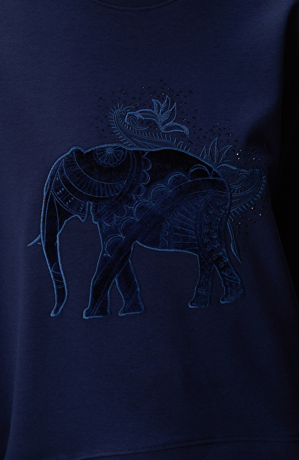 Regular Fit; Bisiklet Yaka; Uzun Kol; Örme Sweatshirt; Fil Nakışlı; Cepsiz