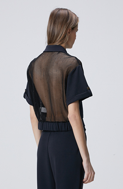 Lacivert File Garnili Modal Karışımlı Sweatshirt