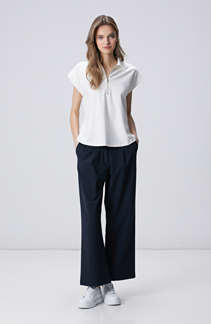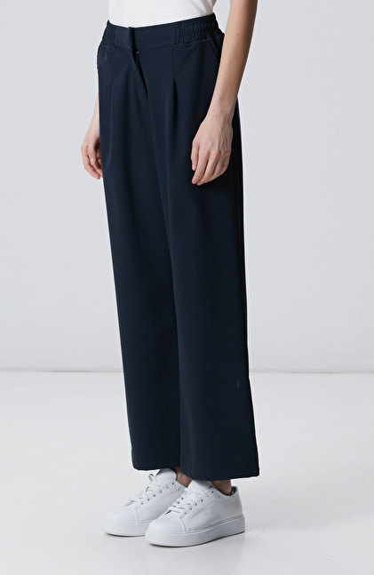 Lacivert Geniş Paça Beli Lastikli Pantolon