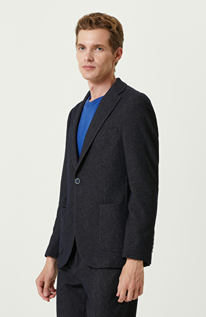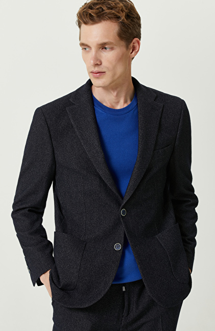 NETWORK Smart Casual Lacivert Gofreli Örme Ceket