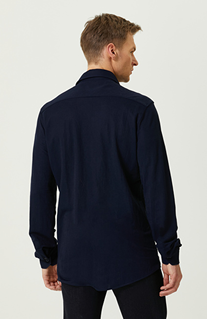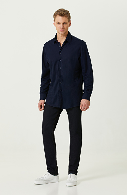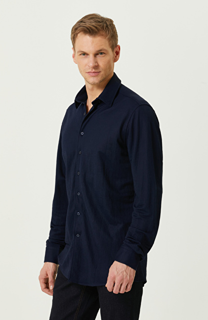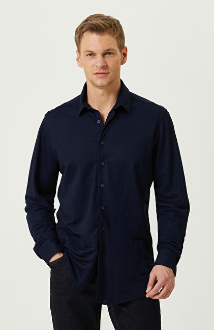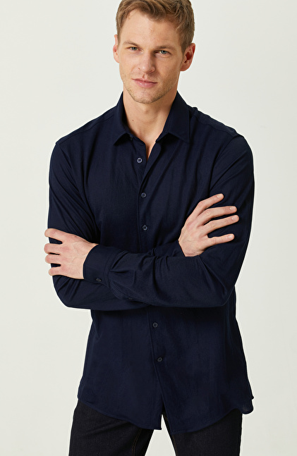 NetWork erkeğinin dinamik ve seksi tarzını yansıtmayı başaran Lacivert Comfort Fit Gömlek, Line+Tone serisinin dikkat çeken parçalarından biridir. Yaz koleksiyonunda yer alan bu şık gömlek, cotton mix içeriği sayesinde sıcak yaz günlerinde rahat bir kullanım olanağı tanır. Alttan britli yaka detayı sayesinde sofistike; comfort fit kalıbıyla ise fit bir görünüm sağlar. Uzun kollu olduğu için deri veya keten ceketlerle eşleştirildiğinde mevsim geçişlerinde de kullanılabilir hale gelir. NetWork Smart Casual koleksiyonunun tüm özelliklerine sahip olan bu lacivert gömleği camel keten pantolon ve lacivert sneaker ile eşleştirerek ofiste ve sosyal hayatta kullanabilir, ilham verici bir stil elde edebilirsiniz.