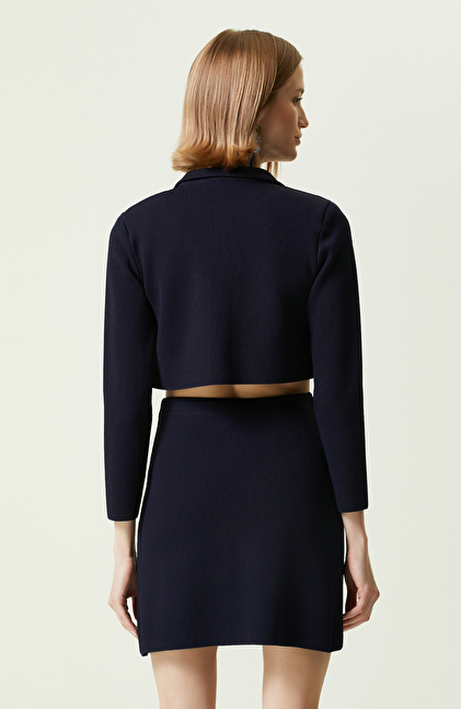 Lacivert Gömlek Yaka Triko Ceket