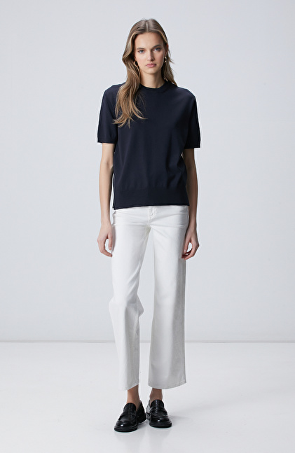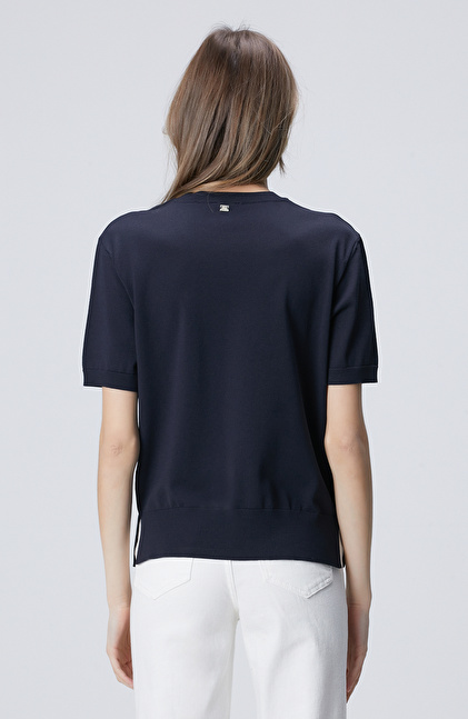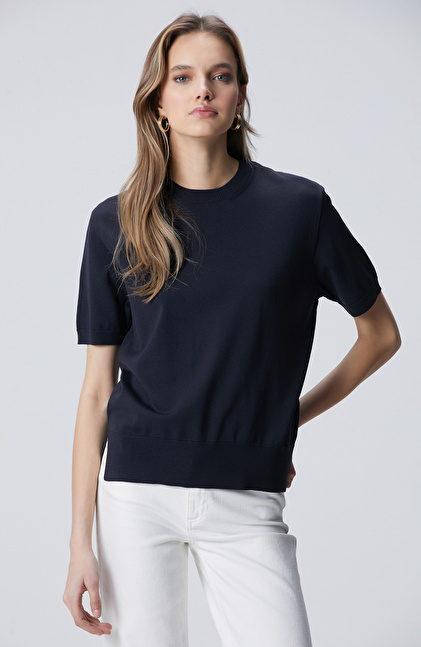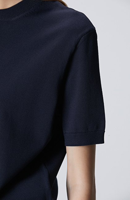Lacivert İnce Ribana Örgü Dik Yaka Rayon Basic Kazak