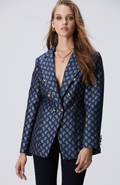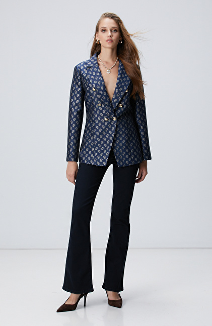 Lacivert Jakar Desenli Ceket
