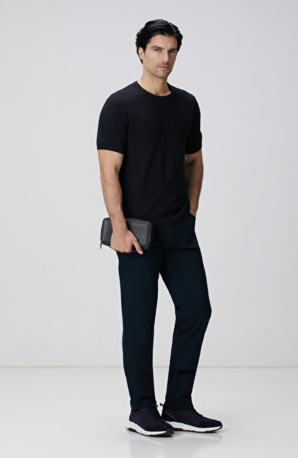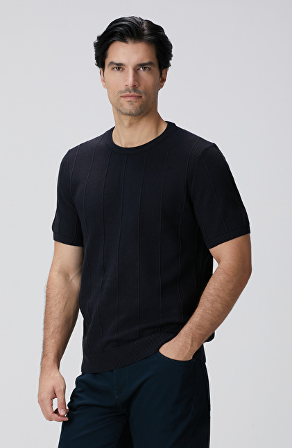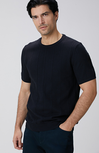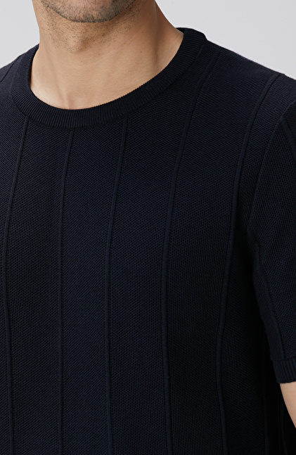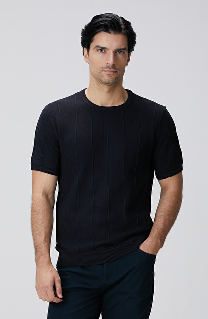 Lacivert Jakarlı Triko Kazak