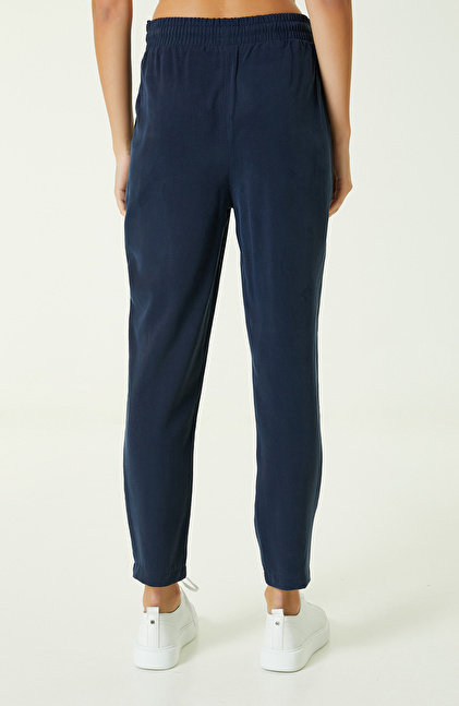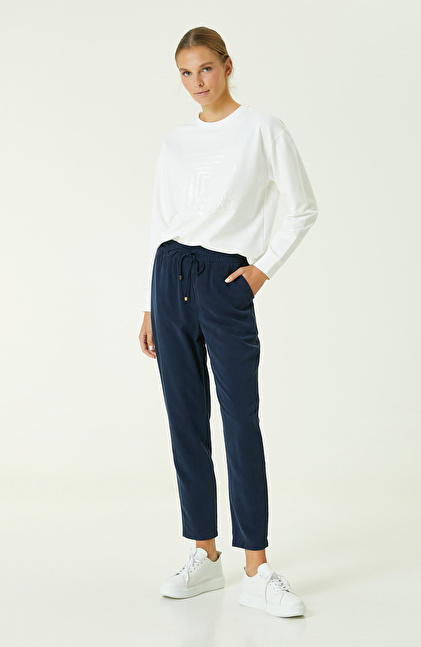 Gün içinde hem giyimine hem de rahatına önem veren kadınlar için Lacivert Jogger Pantolon, şık ve konforlu bir parça olarak öne çıkar. Basic tasarımı ile farklı kombinlerinizi tamamlamak için kullanabileceğiniz pantolon, lüks görünümü ile tarzınızı bir üst seviyeye taşır. Belinin büzgülü ve ipli olması sayesinde modeli kendi tercihinize göre ayarlayabilirsiniz. Yan cepleri sayesinde de bu parçayı fonksiyonel bir şekilde kullanabilirsiniz. Soğuk havalarda üşümemenizi sağlayan kumaşı sayesinde pantolonu, kış aylarında rahatça kullanabilirsiniz. Ayrıca kaliteli dokusuyla da gardırobunuzun en kullanışlı seçenekleri arasında yerini alır. Siz de bu pantolonu; beyaz sweatshirt ve beyaz sneaker ile kombinleyebilirsiniz.
