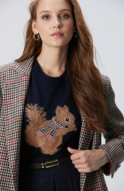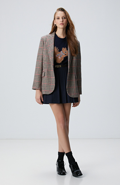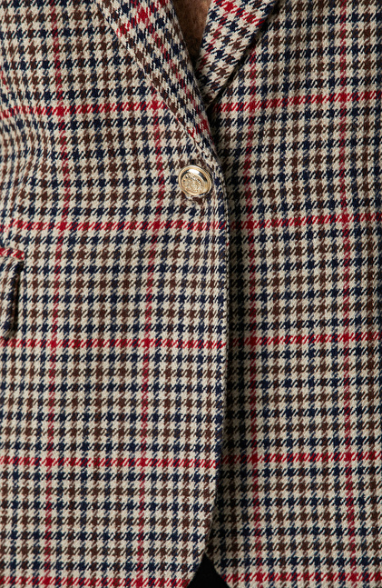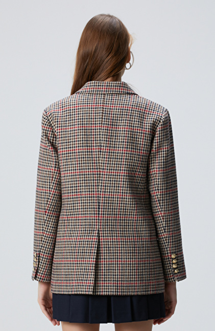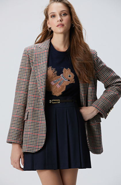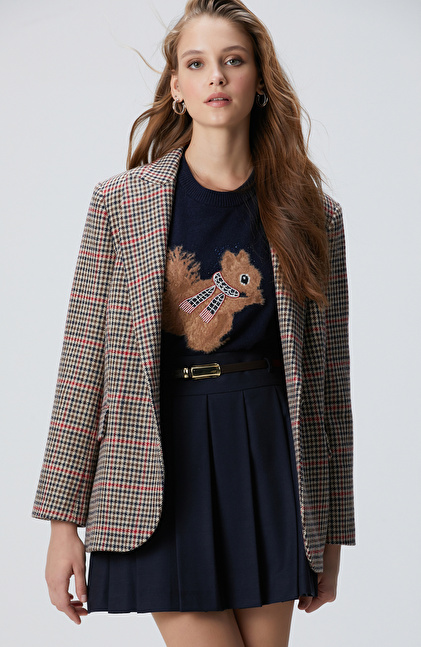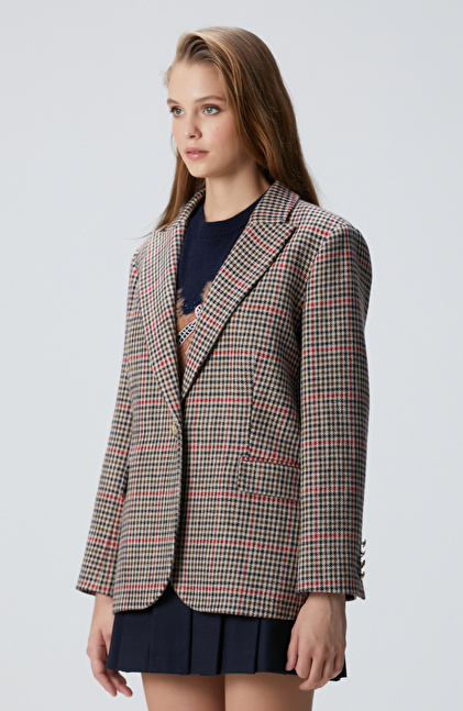 Lacivert Kahverengi Kazayağı Yün Karışımlı Ceket