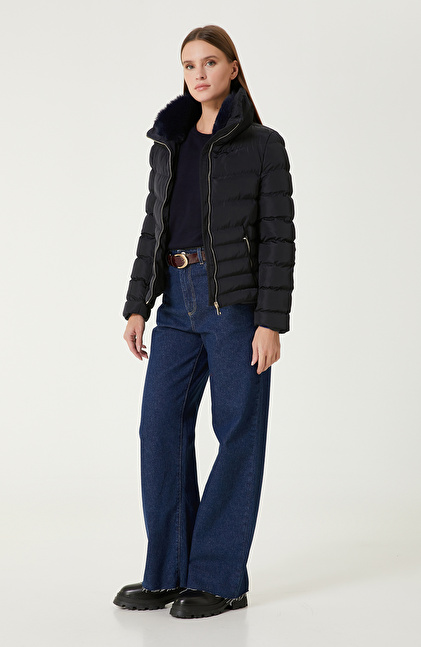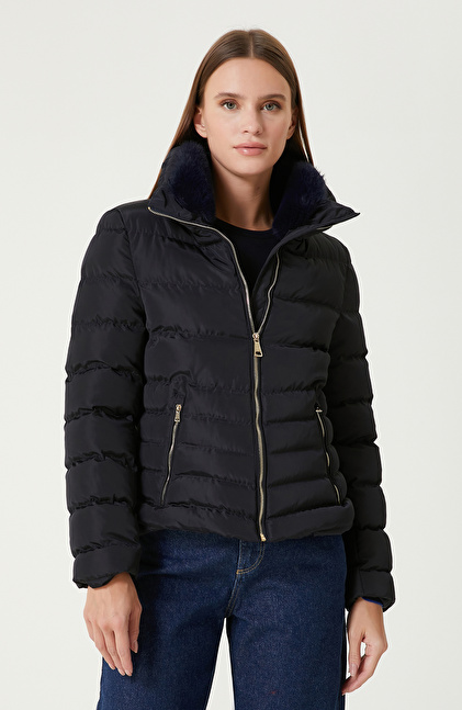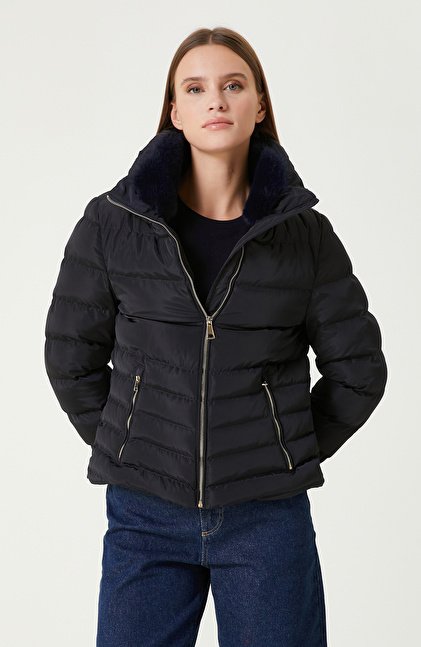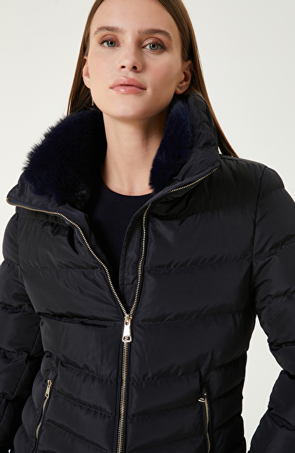 Lacivert Kapitone Mont