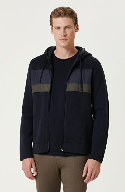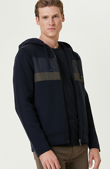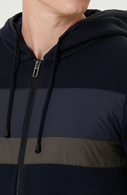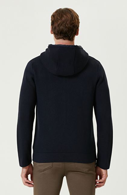 Lacivert Kapüşonlu Triko Mont