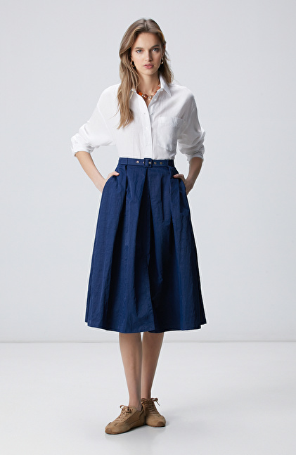 Lacivert Kemerli Etek