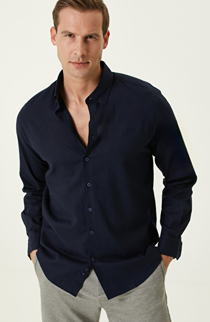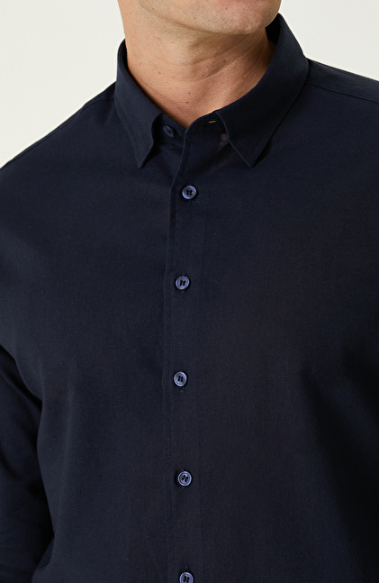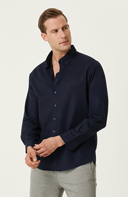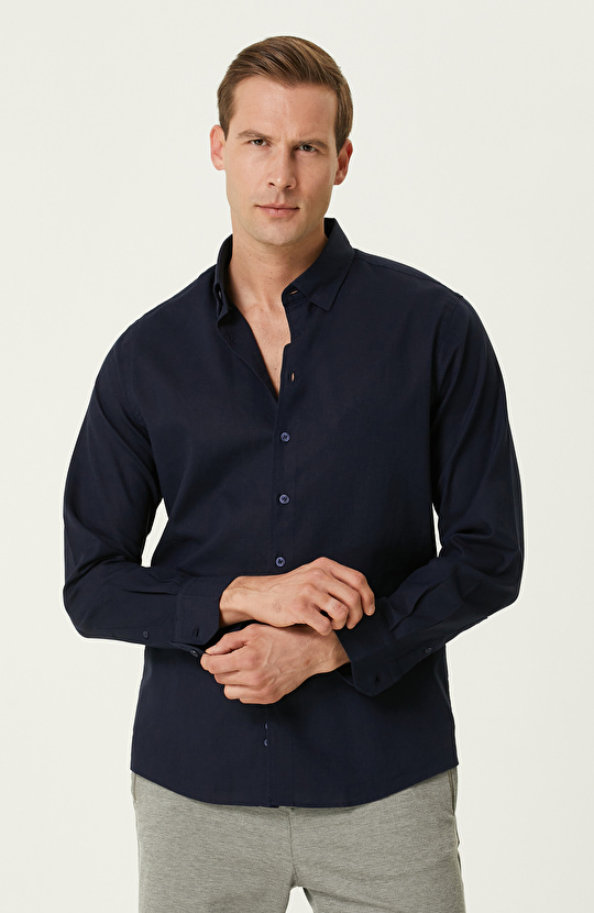 Lacivert Keten Gömlek