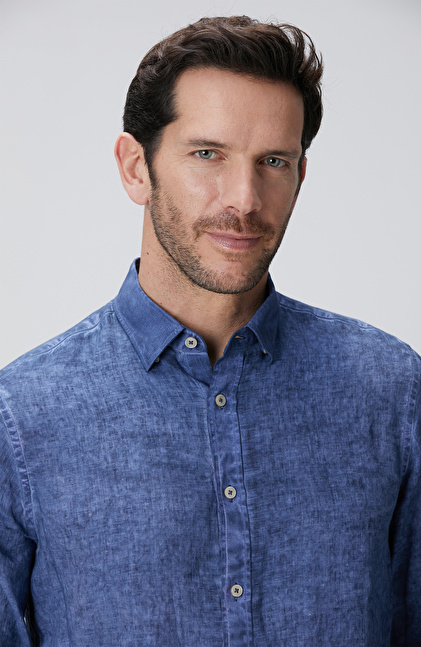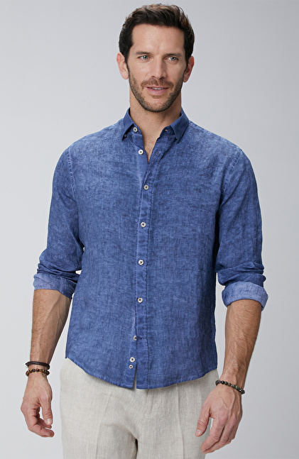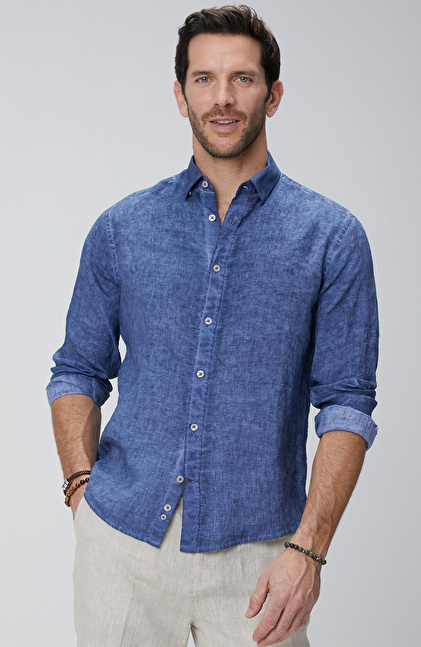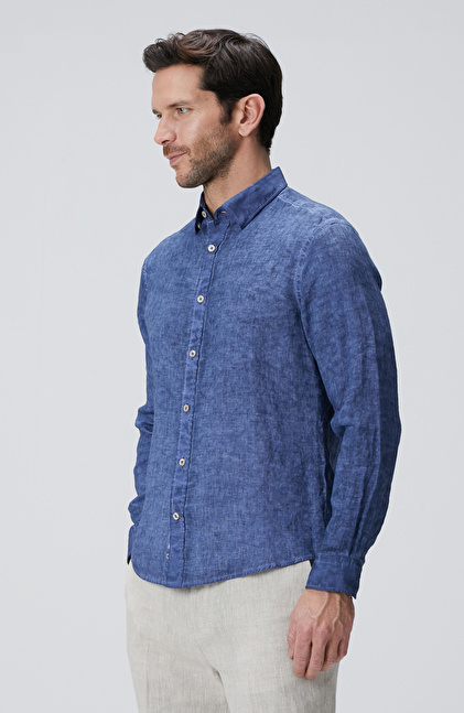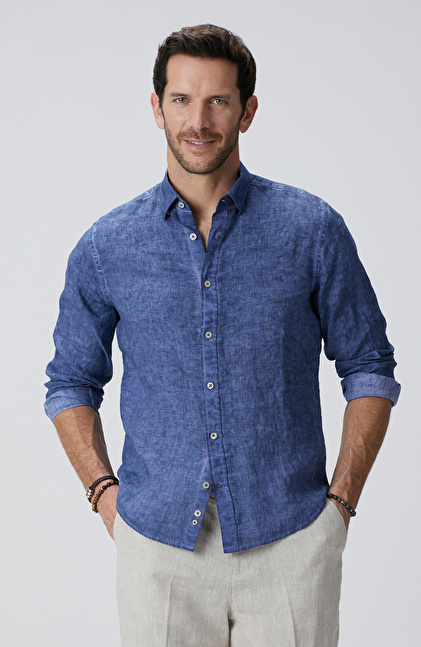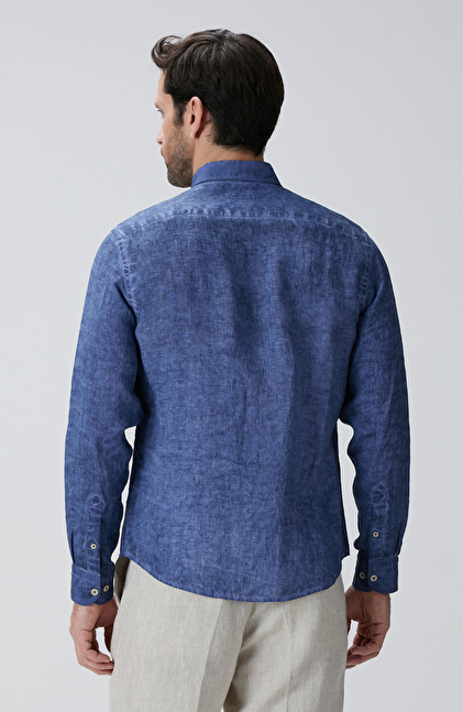 Lacivert Keten Gömlek