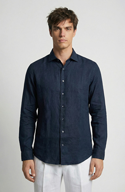Lacivert Keten Gömlek Lacivert Keten Gömlek Lacivert Keten Gömlek