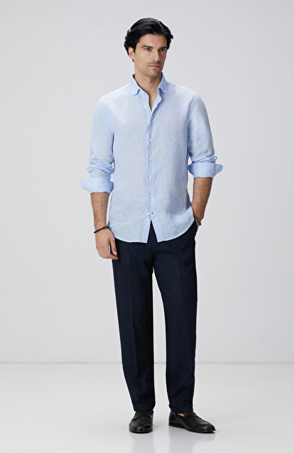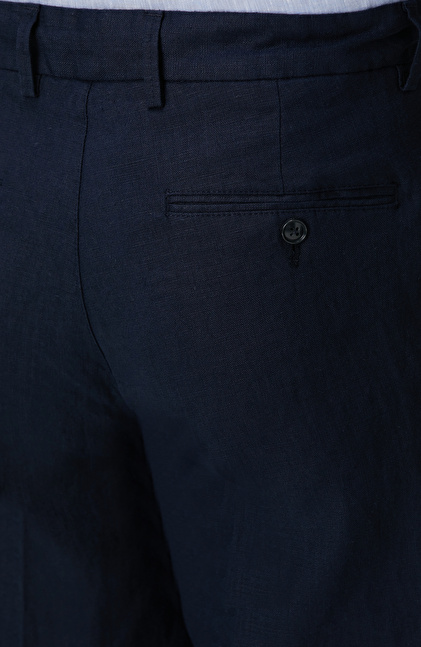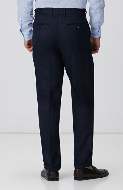 Jogger Fit; Bağcıklı Orta Bel; Duble Paça; Dokuma; Keten Pantolon; Düz Renk; Yan Cepli