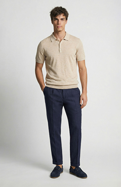 Jogger Fit; Normal Bel; Duble Paça; Dokuma Keten Jogger Pantolon; Yan Cepli