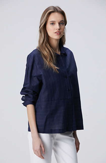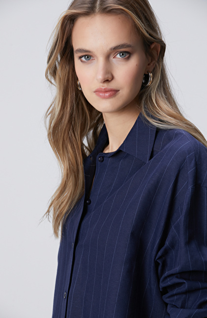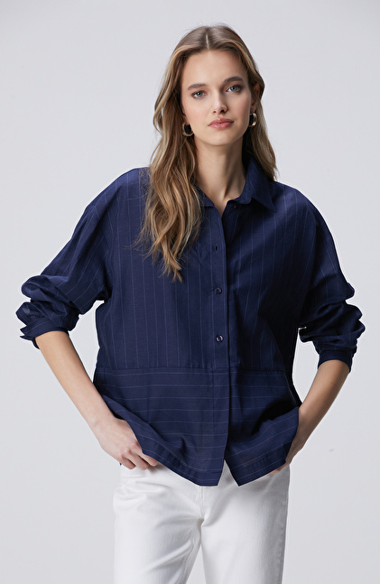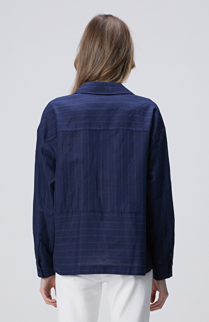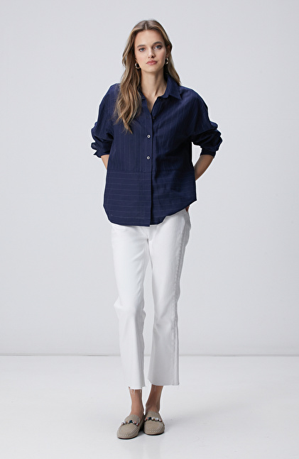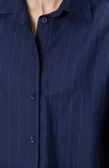 Lacivert Keten Mix Gömlek