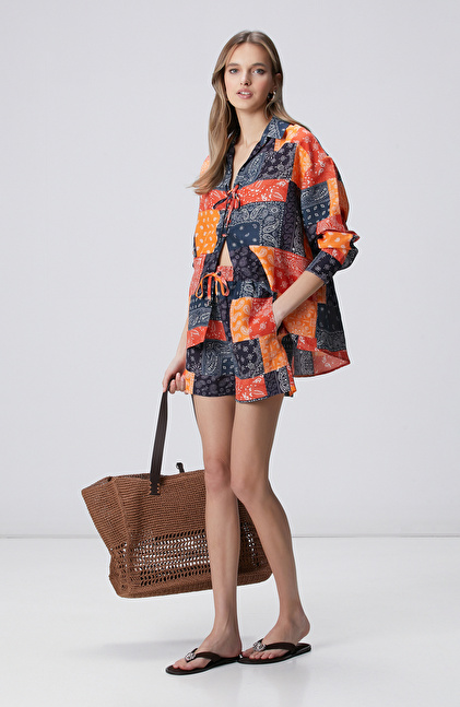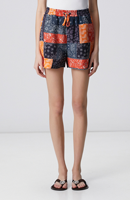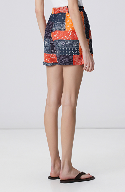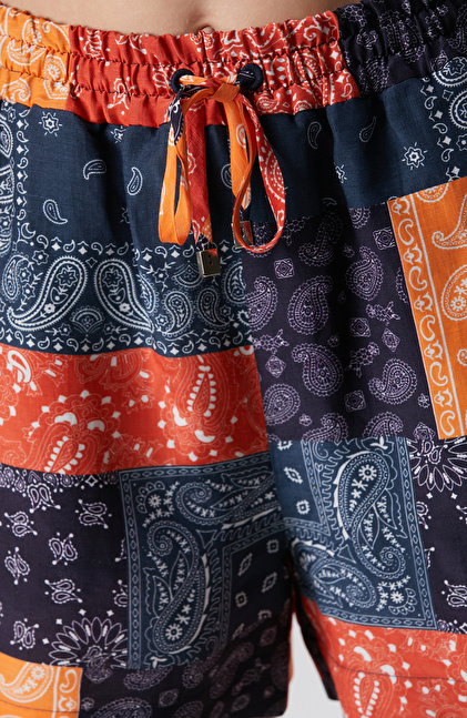 Lacivert Kırmızı Desenli Keten Mix Şort