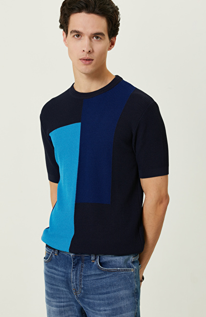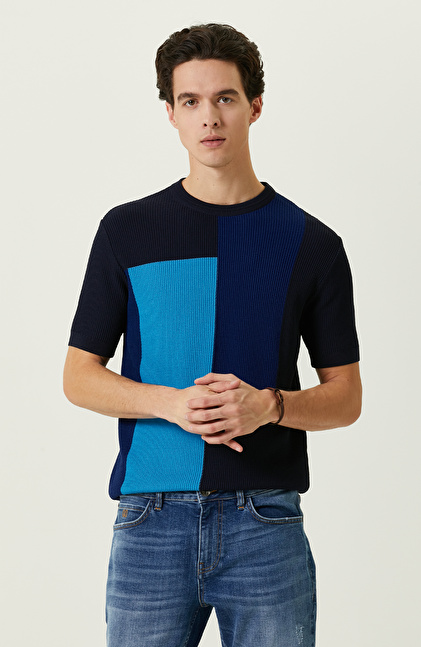 NETWORK Casual Lacivert Kısa Kollu Triko Kazak