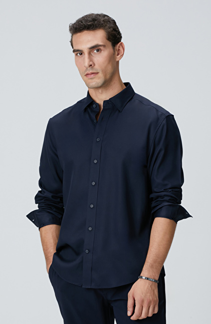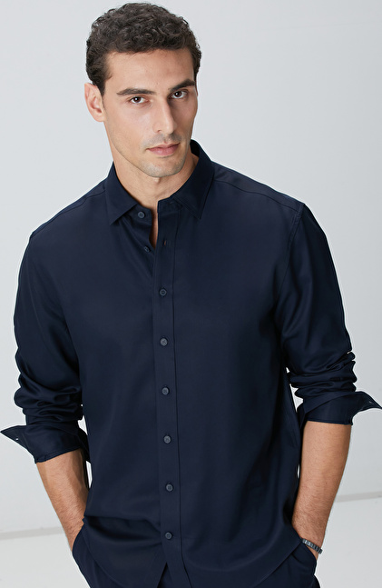 Lacivert Lyocell Gömlek