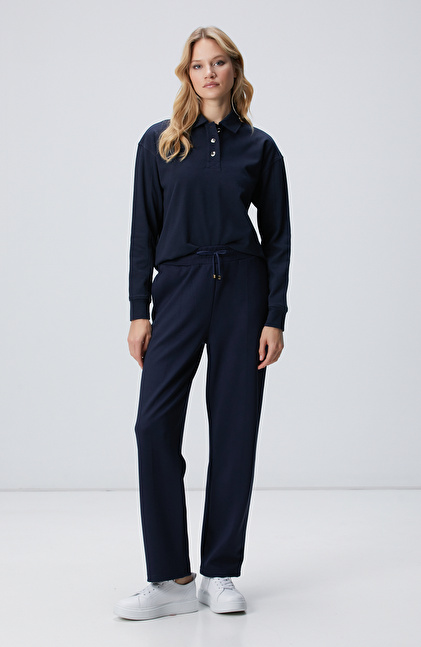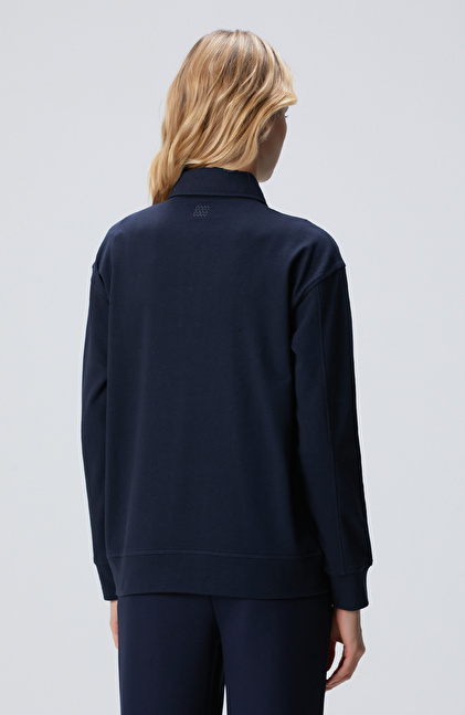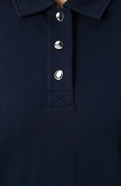 Lacivert Metal Düğmeli Sweatshirt