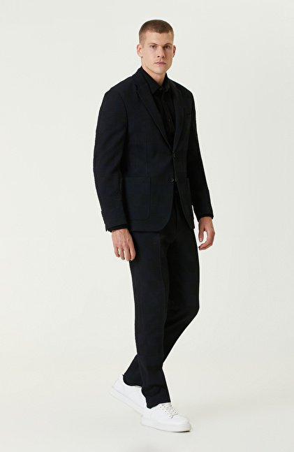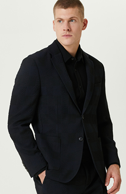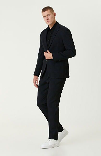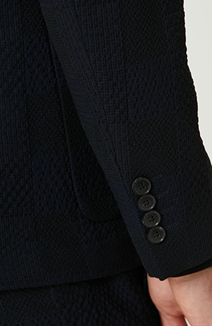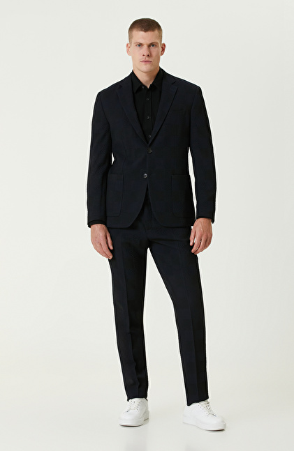 Lacivert N-Tech Yün Karışımlı Gofreli Takım Elbise