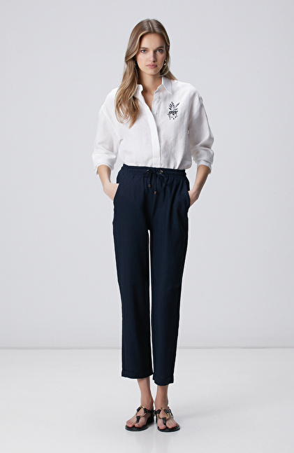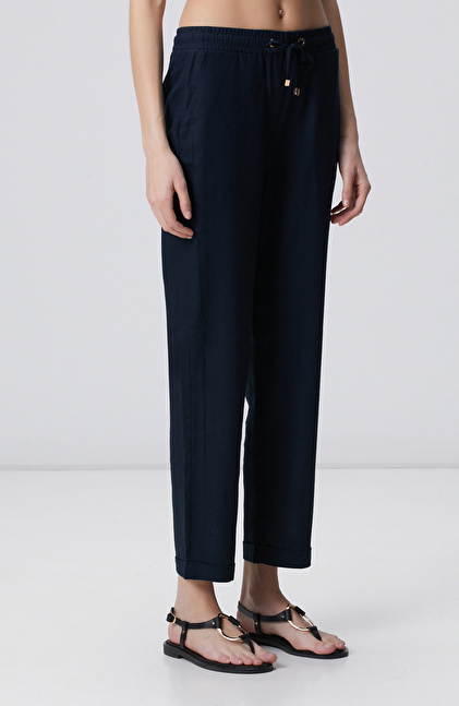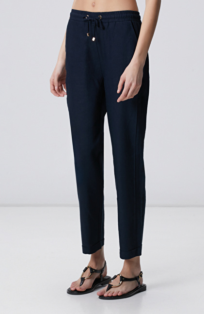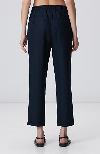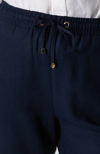 Lacivert Nervür Detaylı Keten Mix Pantolon