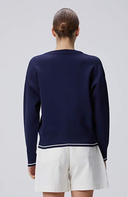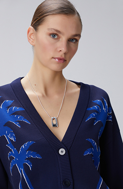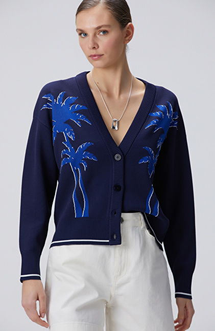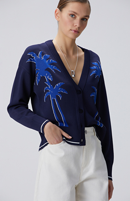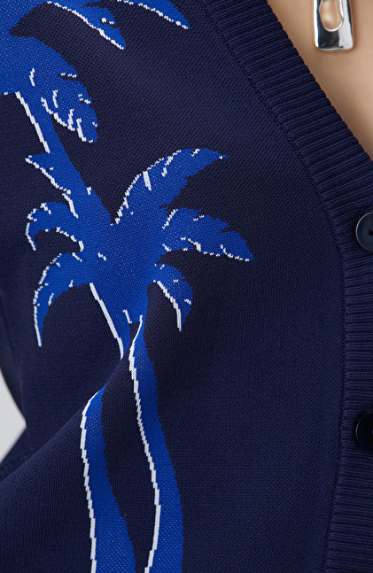 Lacivert Palmiye Desenli Hırka
