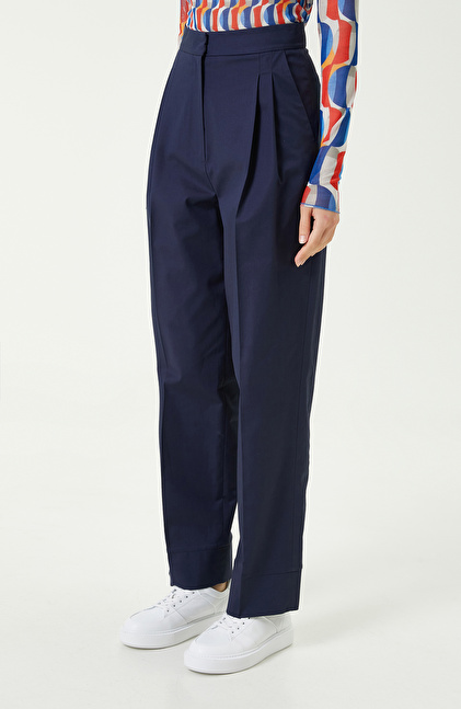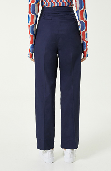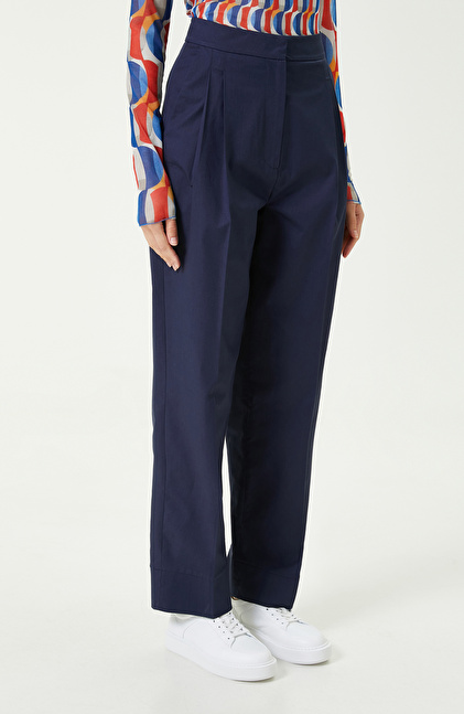 Lacivert Pilili Düz Paça Yüksek Bel Pantolon