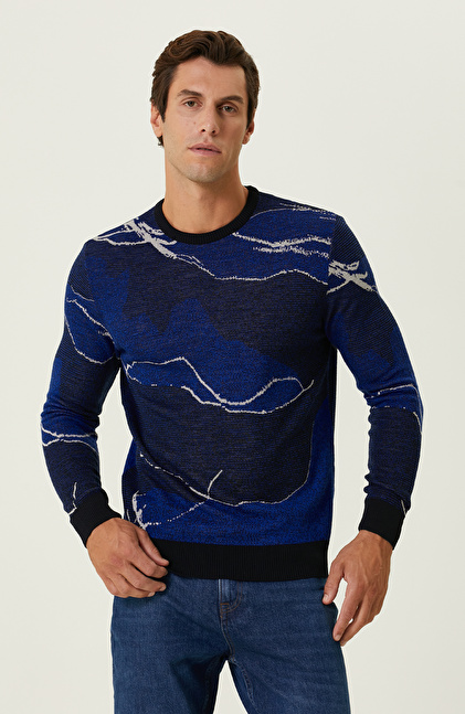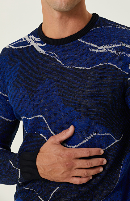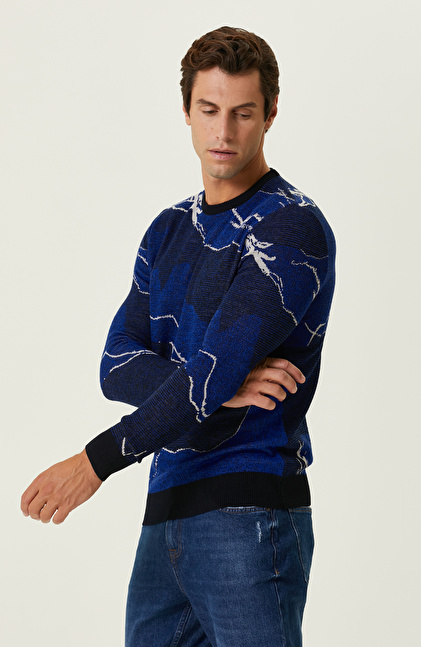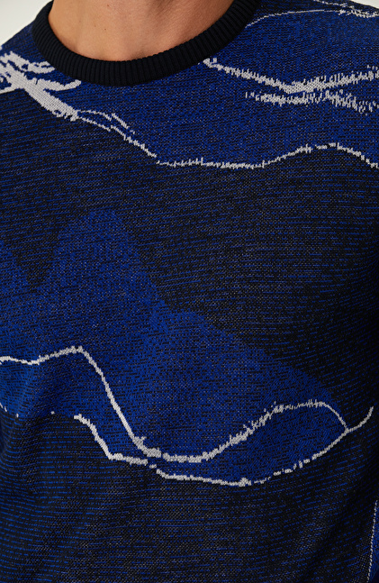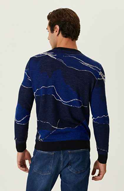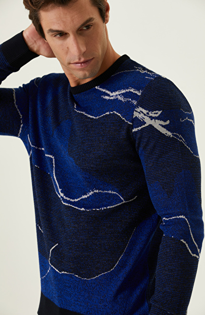 Lacivert Saks Kamuflaj Desenli Triko
