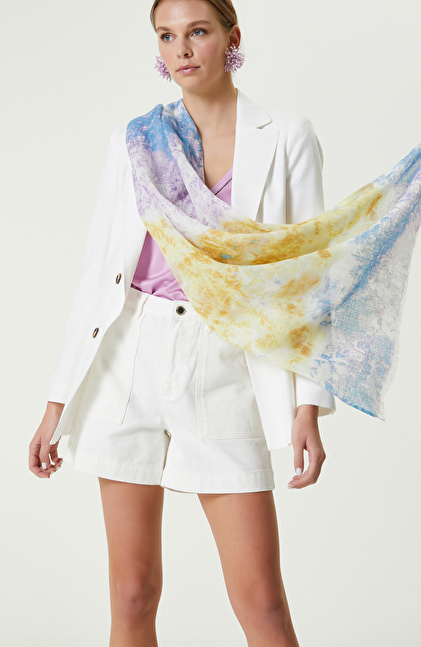 Lacivert Sarı Kadın Keten Şal