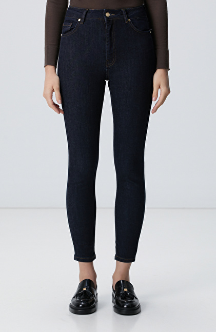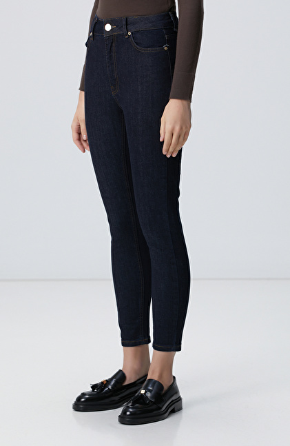 Lacivert Skinny Fit Dar Paça Raw Denim Pantolon