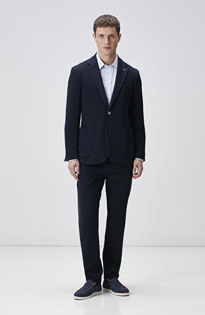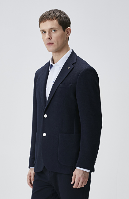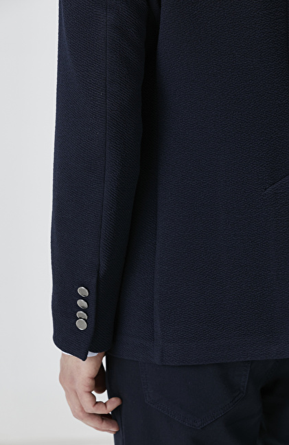 Lacivert Slim Fit Gofre Desen Örme Ceket