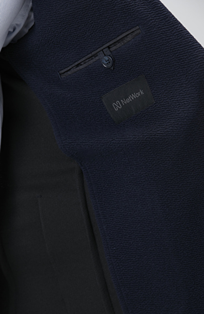 NETWORK Lacivert Slim Fit Gofre Desen Örme Ceket