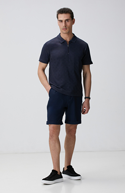 Slim Fit; Polo Yaka; Fermuarlı; Kısa Kol; Jakarlı T-Shirt