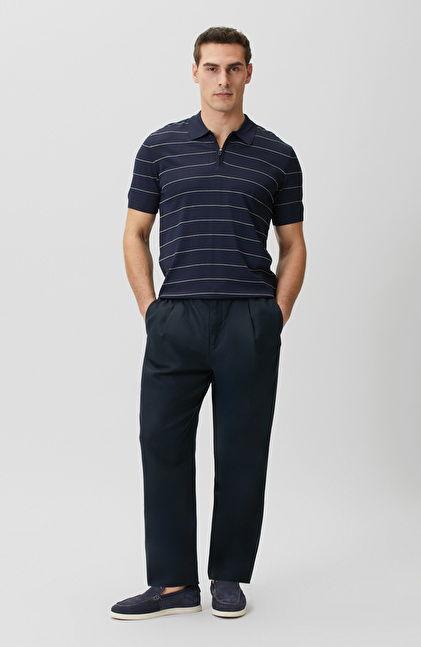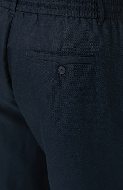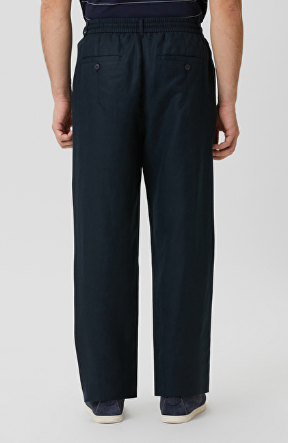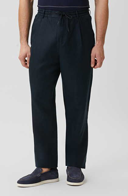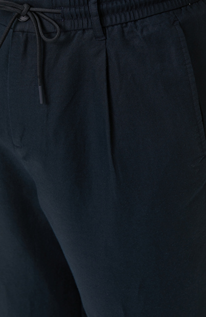 Lacivert Tek Pileli Keten Karışımlı Pantolon