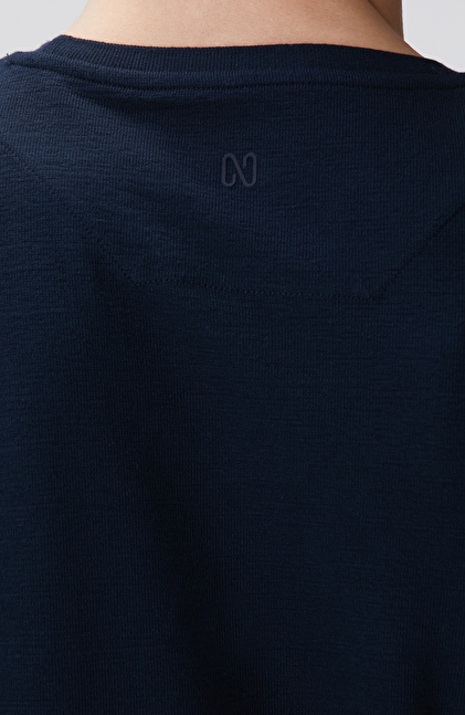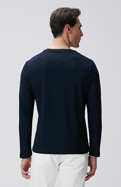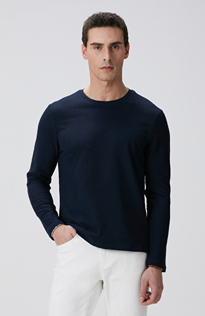 Lacivert Uzun Kollu Pamuk T-shirt