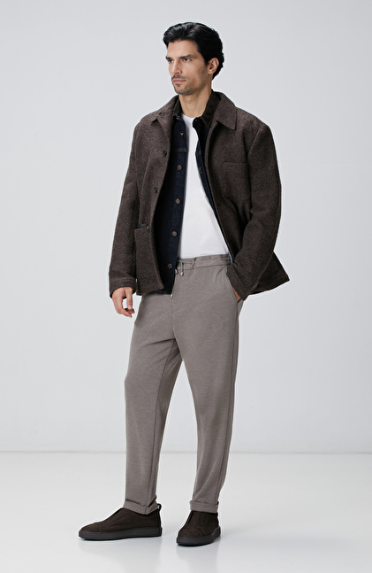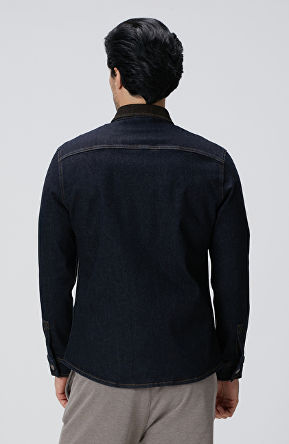 Lacivert Yakası Kadife Denim Gömlek