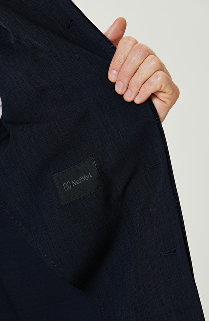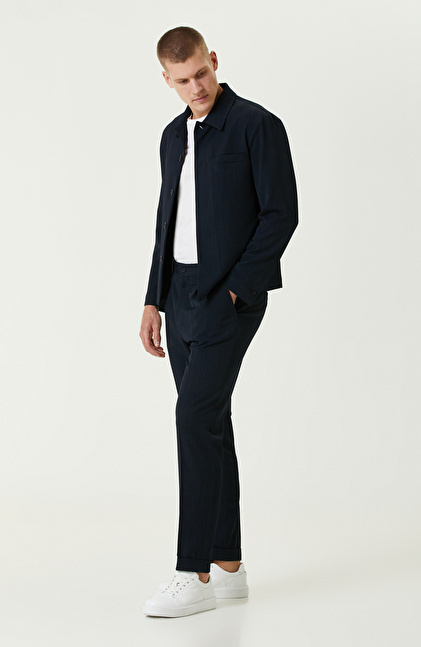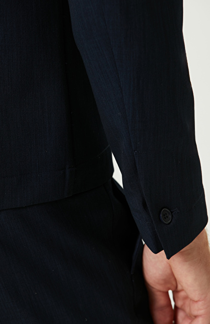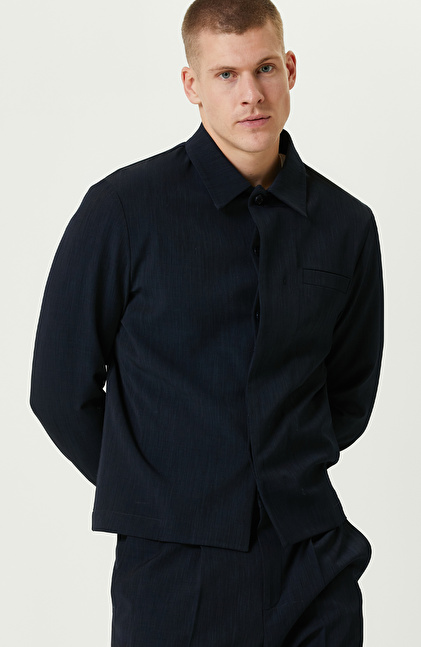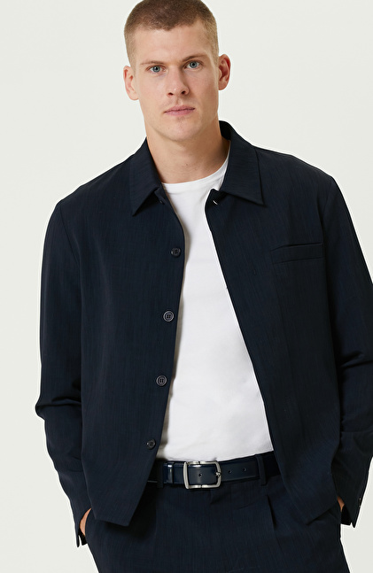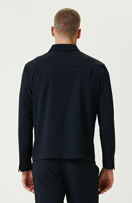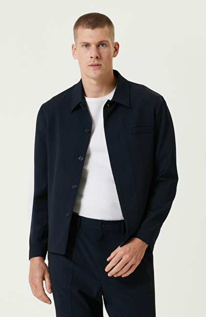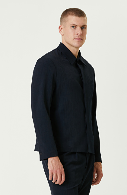 Lacivert Yan Cepli Gömlek Yaka Ceket