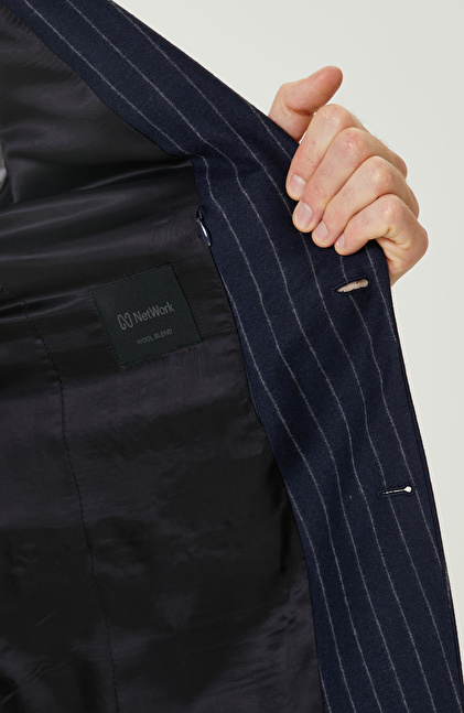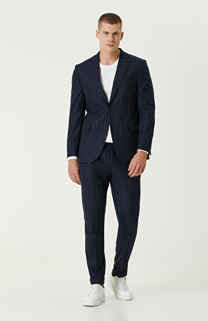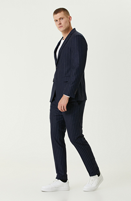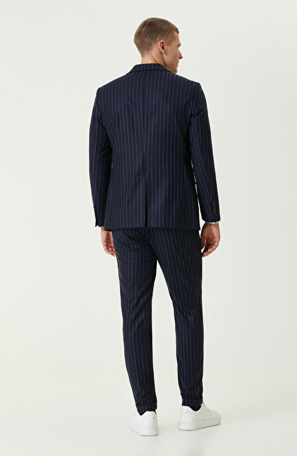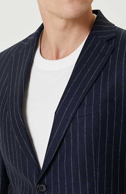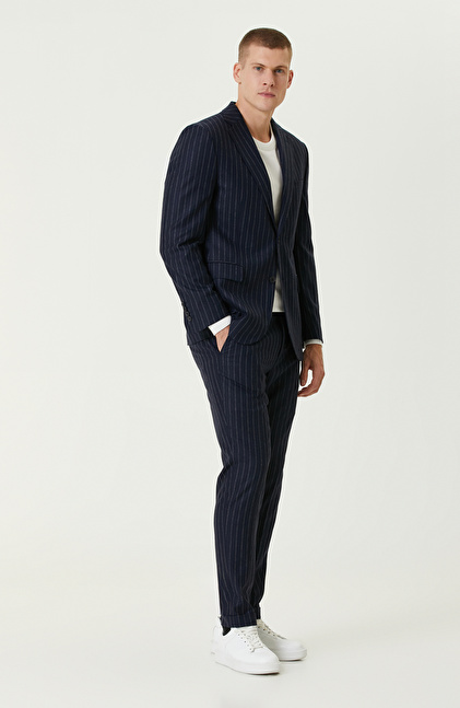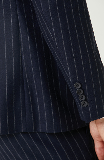 Lacivert Yün Karışımlı Flanel Takım Elbise