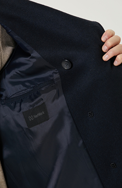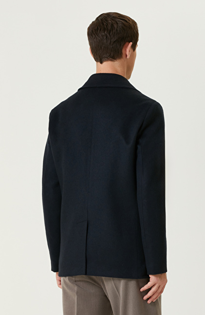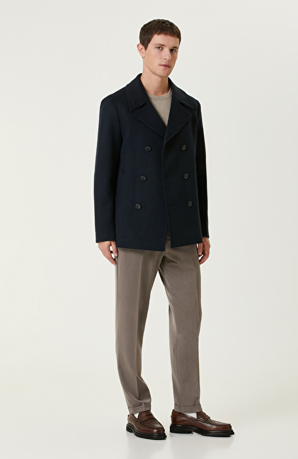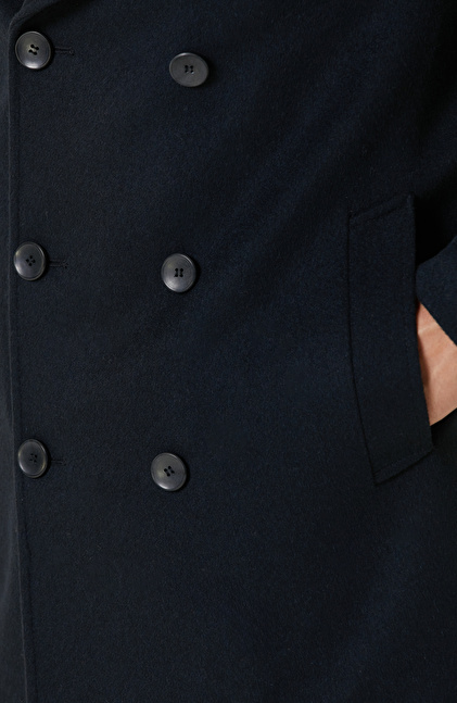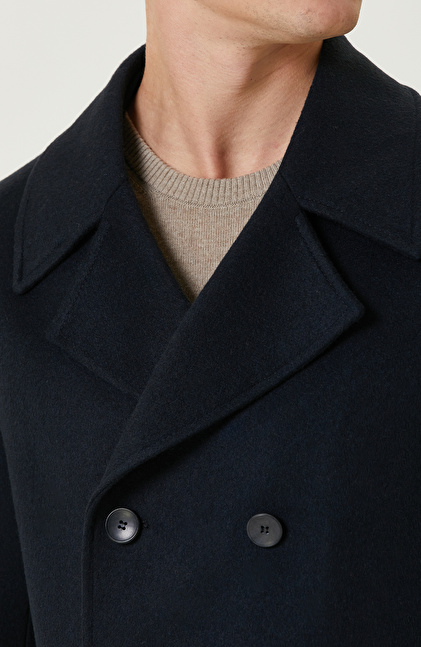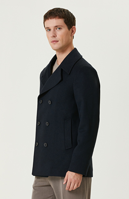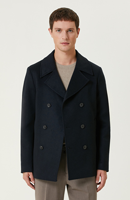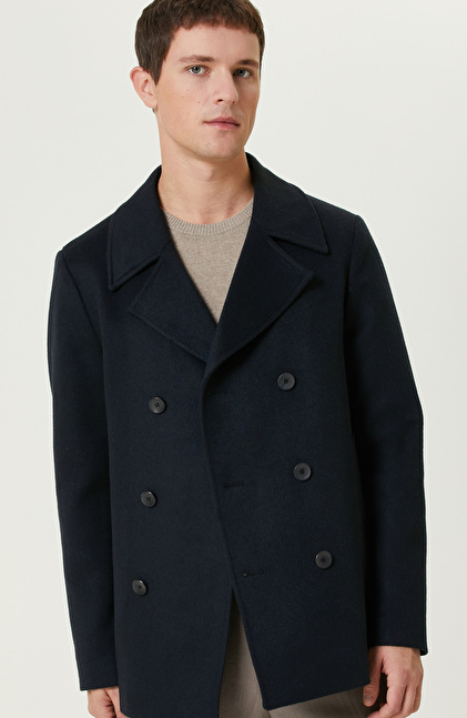 Lacivert Yün Karışımlı Gemici Kaban
