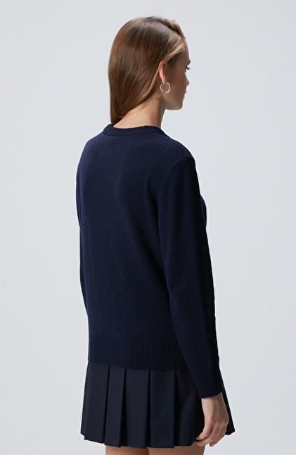 Lacivert Yün Karışımlı Kazak
