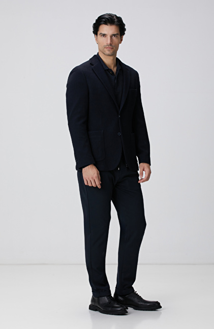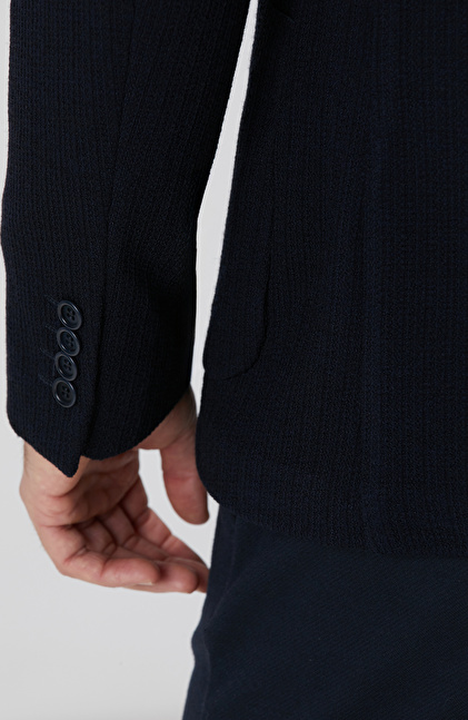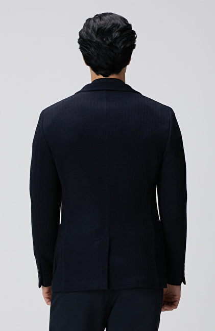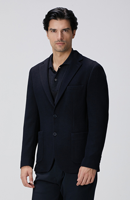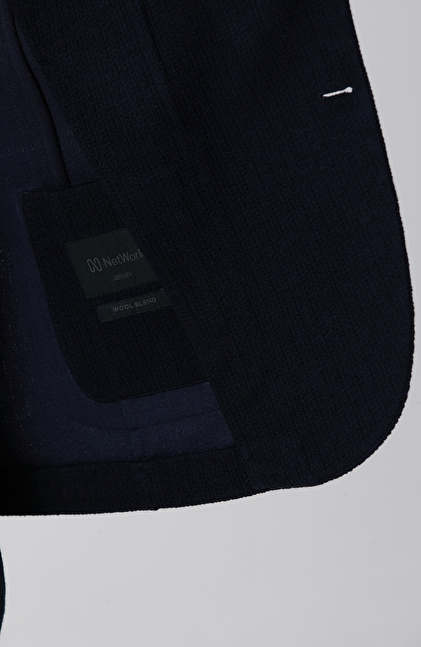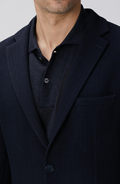 Lacivert Yün Karışımlı Örme Ceket