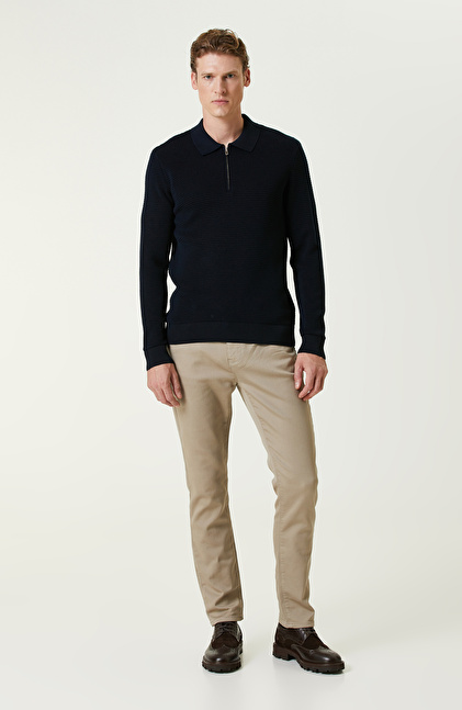 Slim Fit; Fermuarlı; Desenli; Polo Kazak