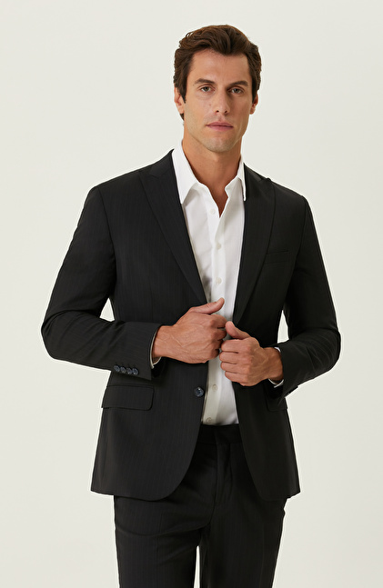 NetWork Business koleksiyonunun lüks ve özgün tasarımlarını tam olarak yansıtan Lacivert Yün Karışımlı Takım Elbise, sonbahar-kış aylarının gözde parçaları arasında yer alır. Özel günlerde göz alıcı bir şıklık elde etmek ve ofis stilini zenginleştirmek isteyenlerin tercihlerinden biridir. Piklapel yaka dizaynıyla göze çarpan model, modern görünümüyle metropolde yaşayan erkekler için idealdir. Çizgi desenli takım elbisenin pantolonu ise normal bel ve düz paça ayrıntıları ile tasarlanır. Güçlü bir ton olan lacivertin iddiası, NetWork’ün zamansız moda anlayışından izler taşır. Siz de slim fit kalıba sahip takım elbiseyi; beyaz bir gömlek, siyah deri kemer ve siyah klasik ayakkabıyla kombinleyebilir, iddialı bir görünüm elde edebilirsiniz.