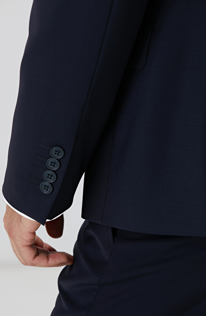 Slim Fit; Düz Renk; Yün Karışımlı; Dokuma Takım Elbise; Ceket: Mono Yaka; Düğme Kapatmalı; Uzun Kol; Pantolon: Normal Bel; Düz Paça; Yan Cepli;Hayvansal Kökenli Tekstil Dışı Parçalar İçerir.