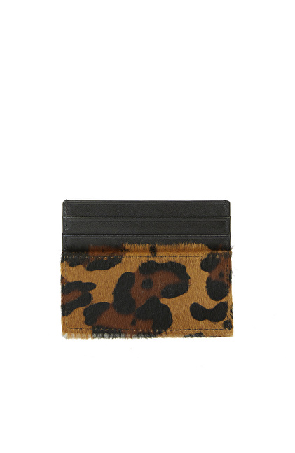 Leopar Desenli Kadın Deri Kartlık