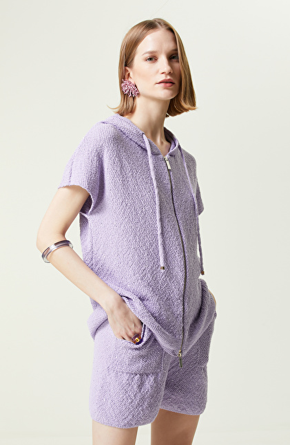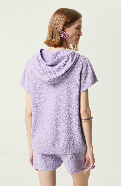 Lila Kısa Kollu Kapüşonlu Hırka