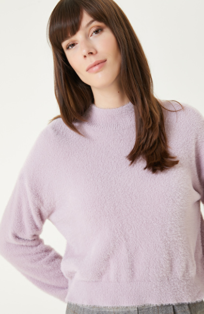 Lila Yumuşak Dokulu Basıc Triko Kazak