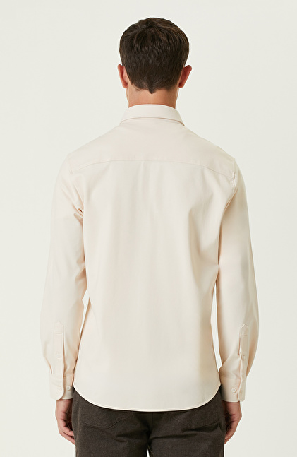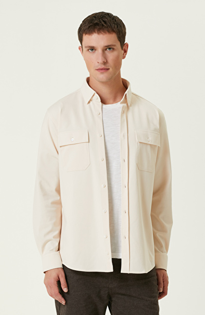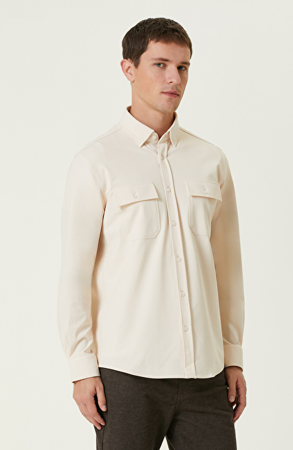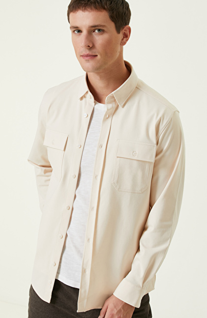 Limited Açık Bej Çift Cepli Örme Gömlek