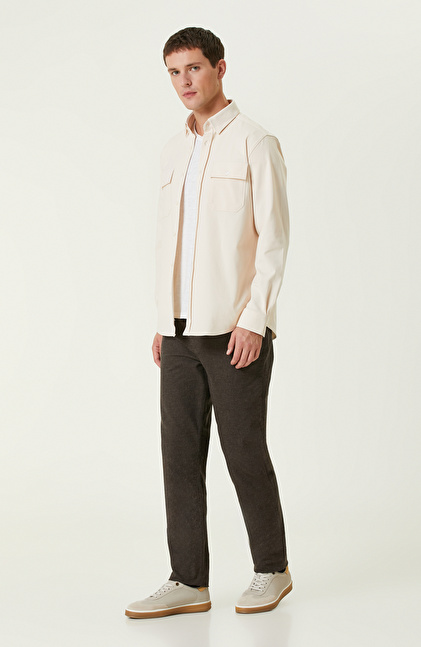 Comfort Fit; Alttan Britli Yaka; Çift Cepli; Pamuk Karışımlı Gömlek